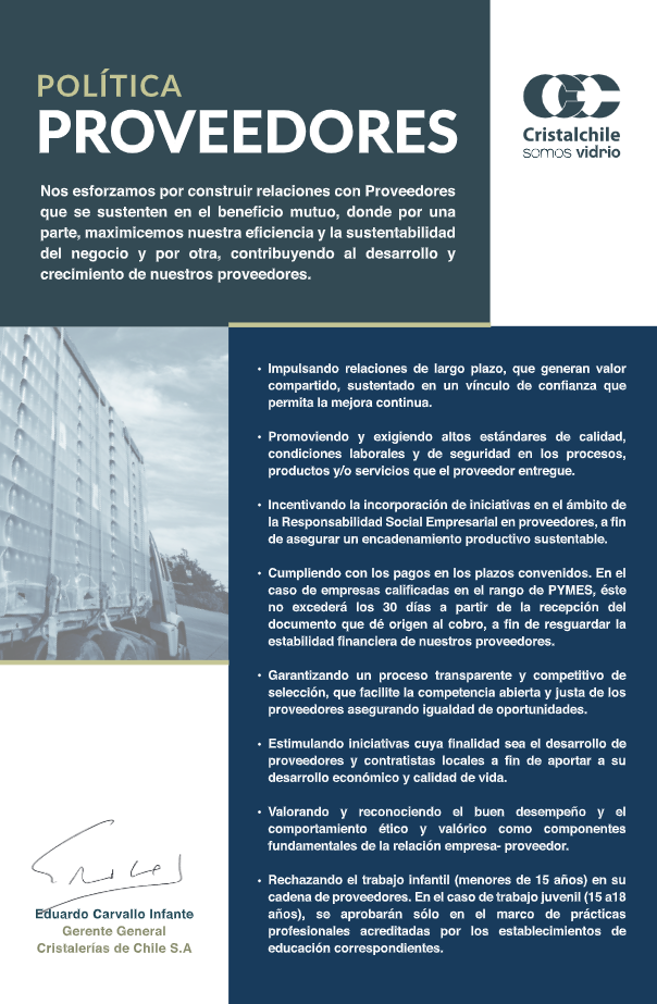 Nos preocupamos por construir relaciones con nuestros proveedores que se sustenten en el beneficio mutuo.